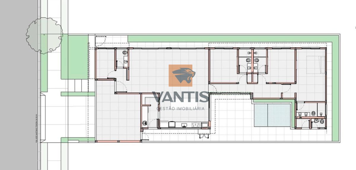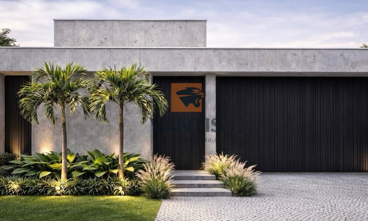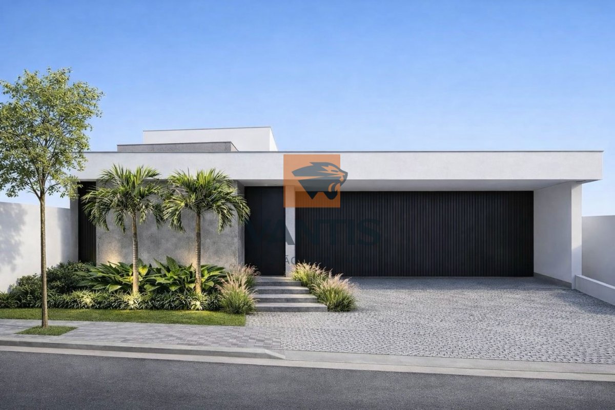 Residência térrea em construção com projeto contemporâneo, implantação com integração entre área social, lazer e paisagismo, priorizando iluminação natural e ventilação cruzada.