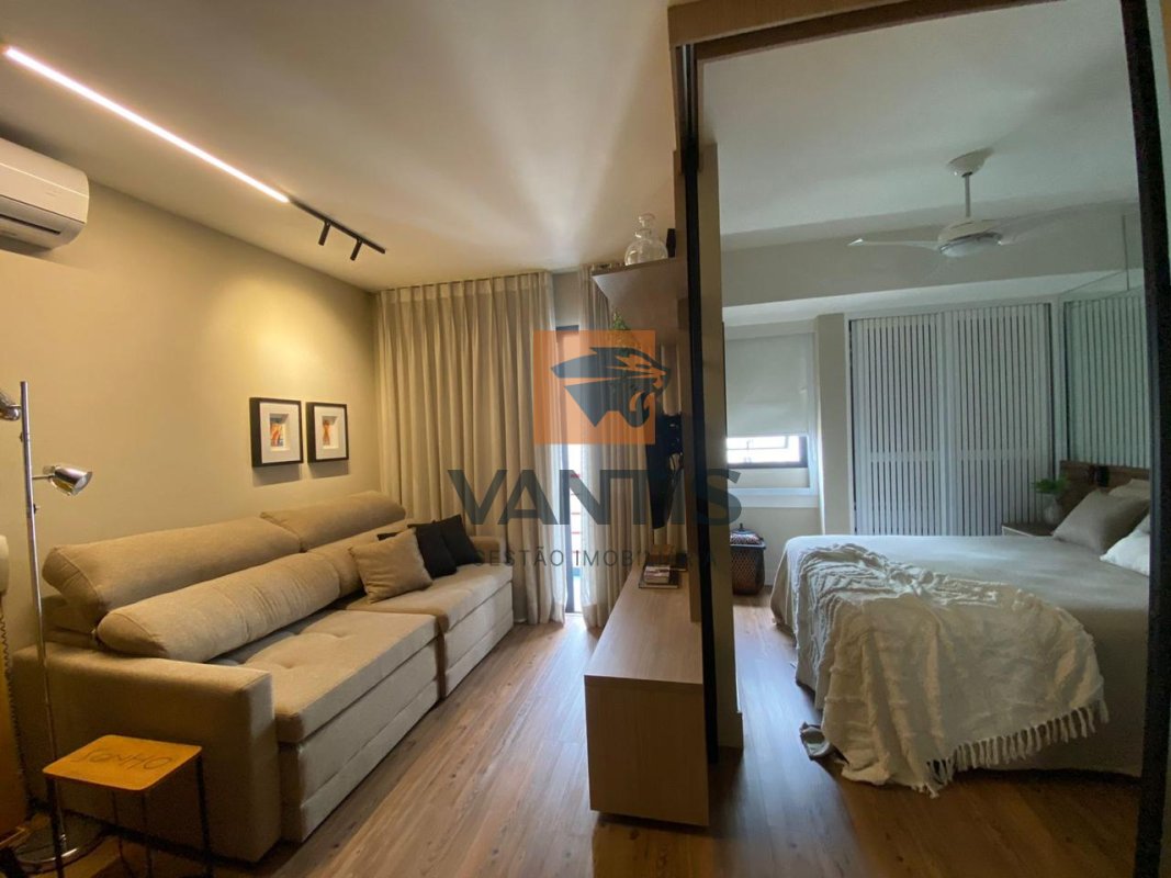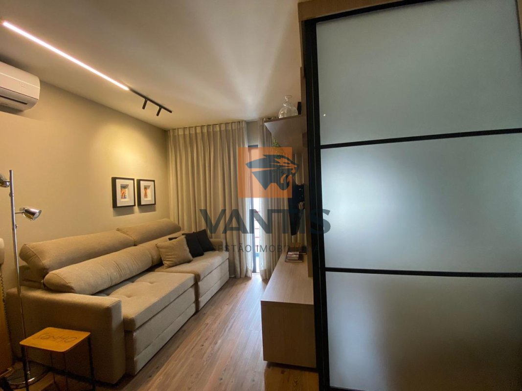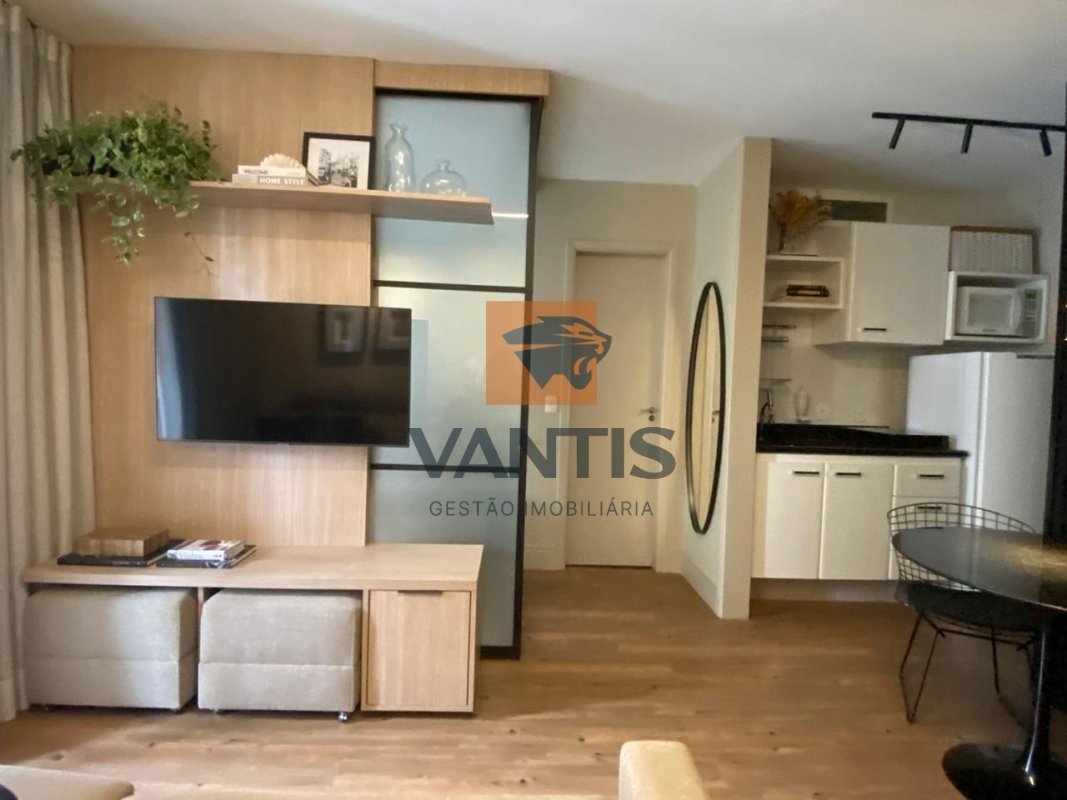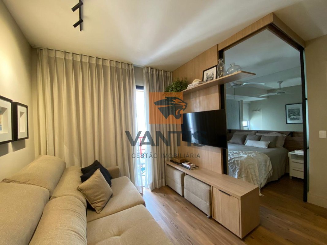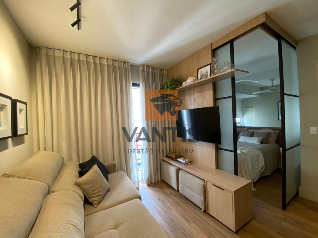 O apartamento possui ambientes bem planejados, com sala integrada à cozinha, quarto confortável e acabamentos contemporâneos, além de excelente iluminação natural.